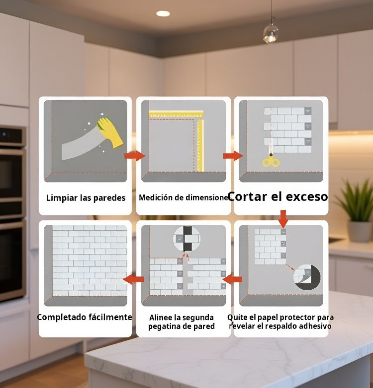 Detalle del efecto 3D de los azulejos autoadhesivos para baño